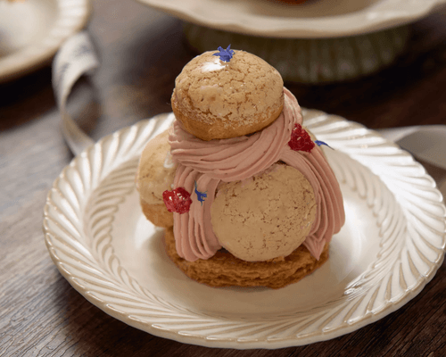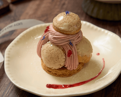 鬆軟泡芙填入紅莓酸奶內餡,酸甜清爽,口感輕盈如雲。