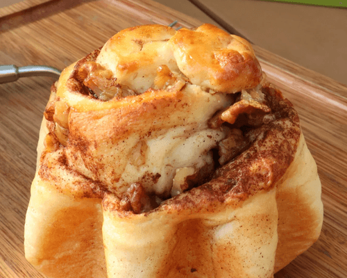 鬆軟麵團捲入香濃肉桂糖霜,淋上乳酪糖漿,暖心甜點首選