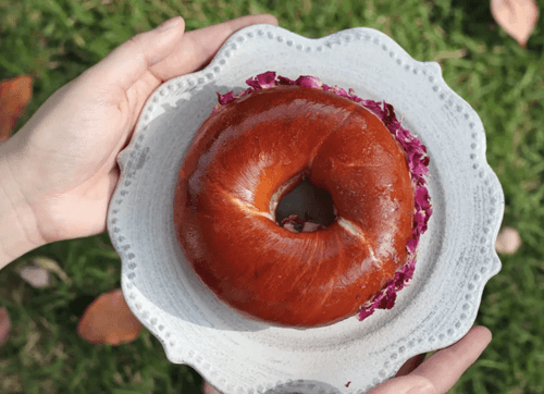 香氣濃郁的柔韌貝果,包裹著淡淡花香